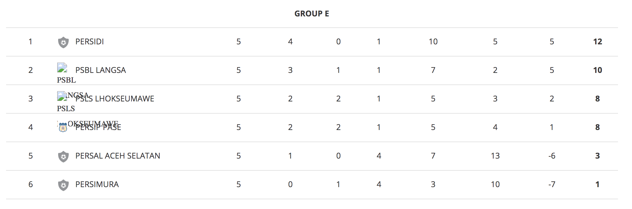 Berikut ini klasemen akhir Grup E